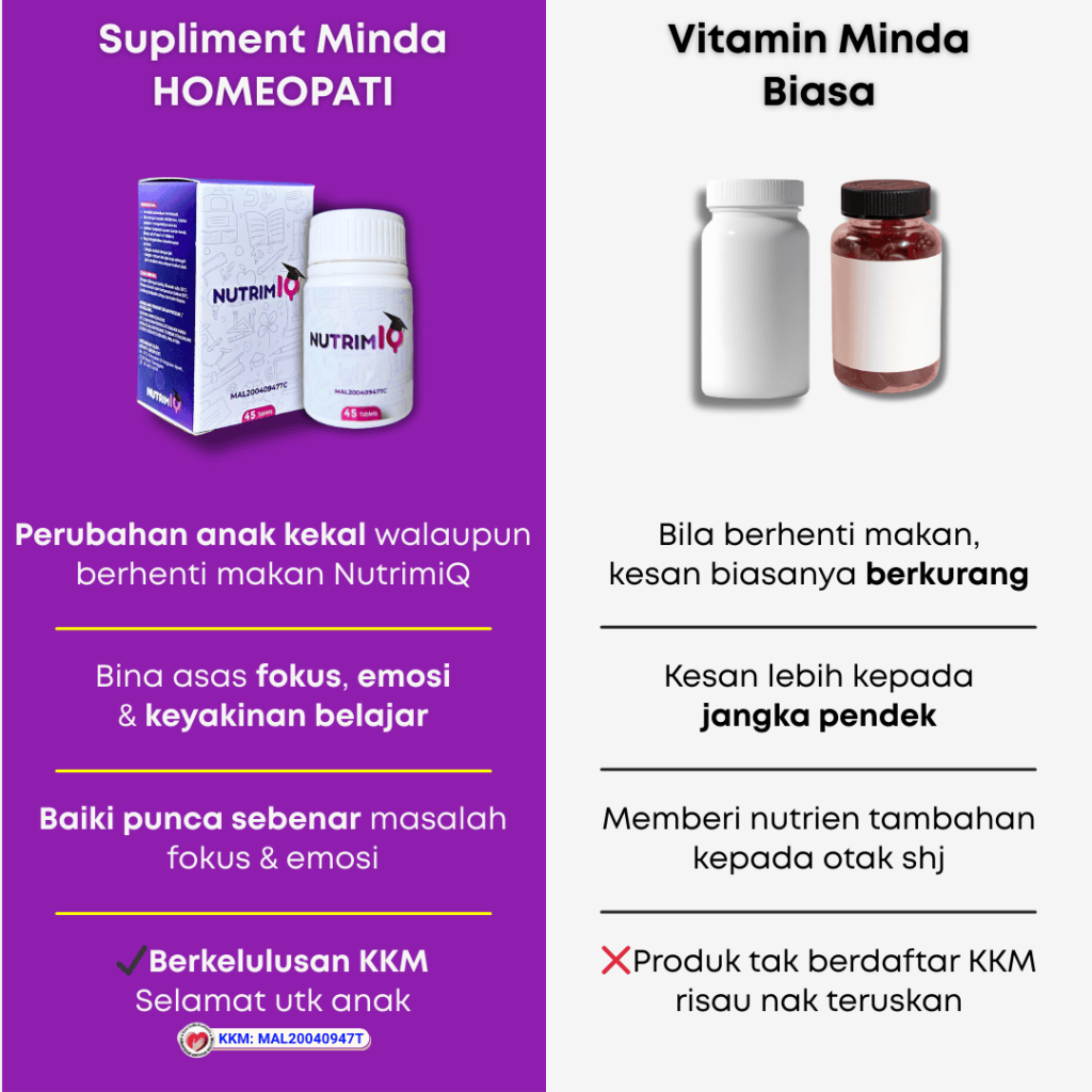 Tiada kesan sampingan jangka masa panjang atau pendek ya sebab NutrimiQ sudah mendapat kelulusan daripada KKM.