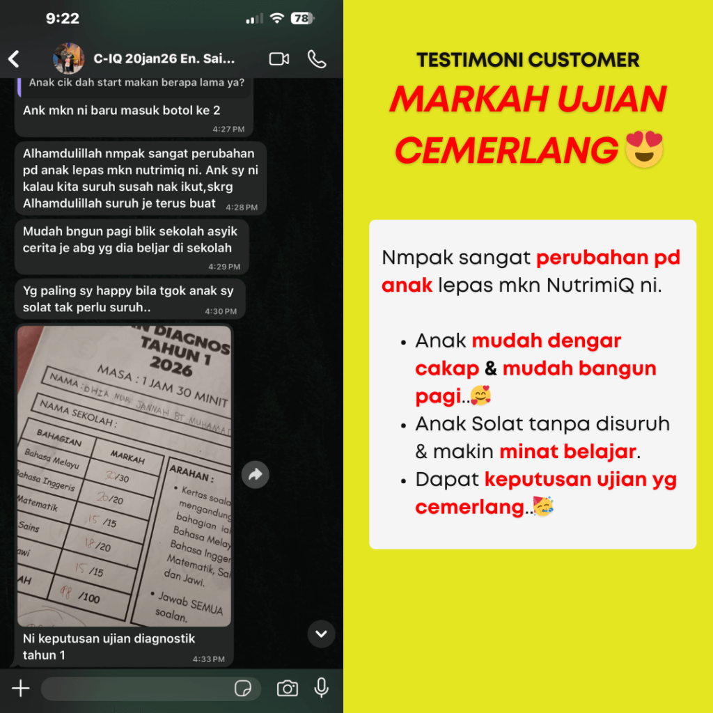 Perubahan bergantung kepada rutin pemakanan, persekitaran, dan perkembangan individu anak. Biasanya selepas seminggu amalkan, sudah nampak kesan positif kepada anak ya.